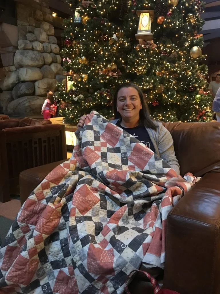Yes, I really did slip away from my family while at Disneyland to spend some of the best quilty quiet time in the lobby of Disney’s Grand Californian Hotel. The fact that it was decorated for the holidays only added to the beauty and the charm.