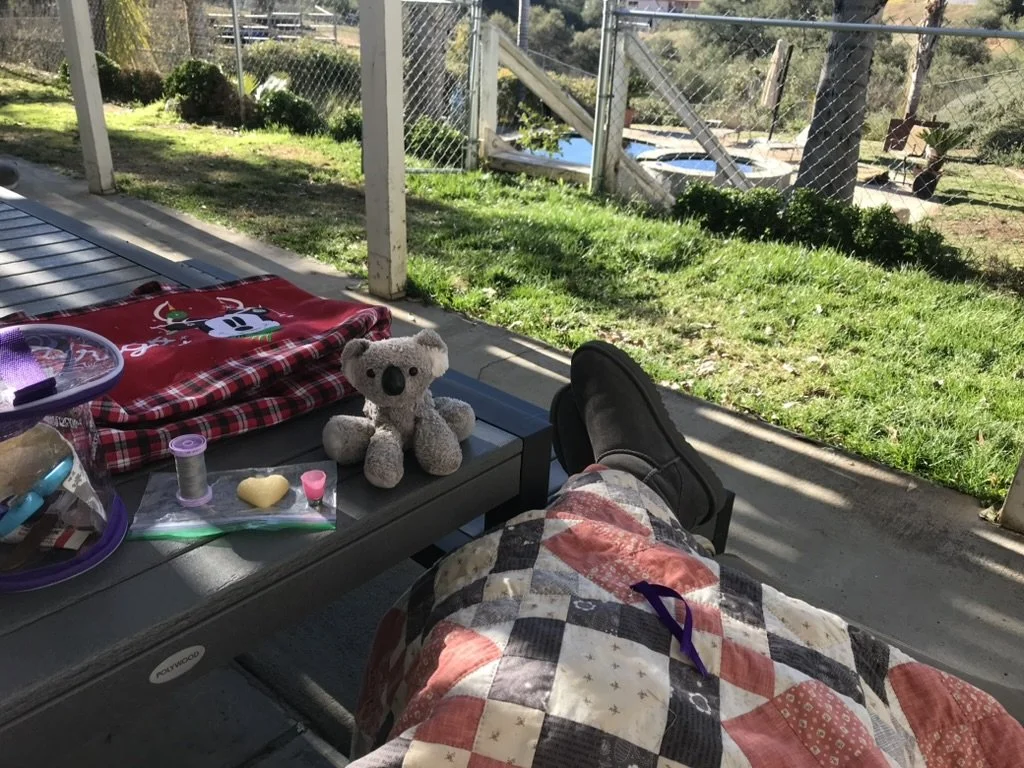 Nothing beats enjoying my morning coffee while quilting on my back porch.