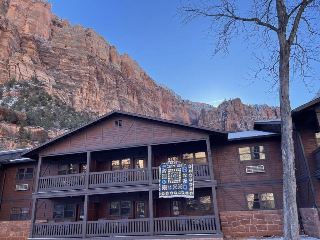 And then there was that winter we took our kids to Zion National Park and it snowed! I love how I finished quilting a block of this very special quilt during that trip.