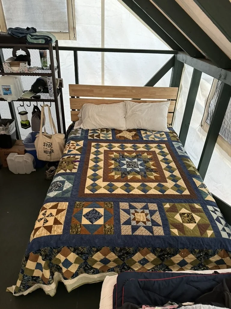 The bonus to bringing my quilt-in-progress with me for our stay in the tent cabins in Yosemite’s Camp Curry was the added warmth on those chilly October nights.