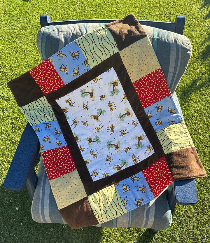 Thankfully, I wasn’t starting entirely from scratch. As a young child, my mom had taught me how to sew using a needle and thread, and how to use that needle to make a quilters knot at the end of my thread. I don’t remember why, or what kind of project or task brought about the need or opportunity to teach me this, but I’ve never forgotten it, and have always been grateful for the knowledge. I’ve found it to be a useful life skill I’ve used many times throughout the years. I also benefited from having taken my middle school’s “Cooking and Sewing” elective class in the eighth grade. Thanks to my incredible teacher, Mrs. Garrigues, I learned key sewing fundamentals such as, how to thread and operate a sewing machine, how to wind and load a bobbin, what the hell a bobbin is, and - most importantly - how to sew a straight line. We did lots of different kinds of projects in Mrs. Garrigues’s class that year, but they were all either garment or pillow making related. Thankfully, those bare basics she taught us stayed with me over the decades, and would became the foundation of my quilting skills.